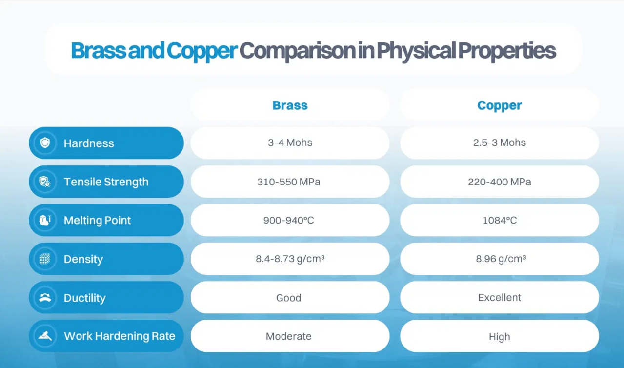 - In CNC machining, brass enables higher cutting speeds, superior surface finishes, and longer tool life, while copper excels in electrical and thermal conductivity.