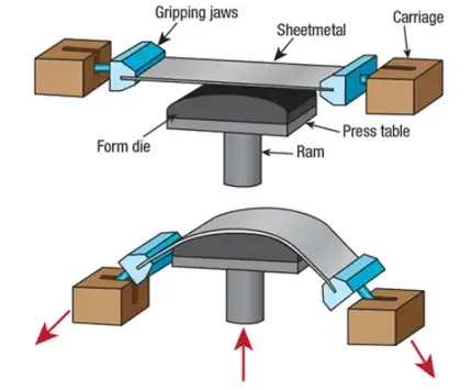 Stretch forming involves stretching a metal sheet or plate over a form or mold, using hydraulic or mechanical forces.The metal is clamped at its edges while the stretching force is applied, allowing it to conform to the shape of the form. This method is particularly popular in high-precision industries like aerospace. Learn more about its applications in Aerospace Sheet Metal Fabrication.
